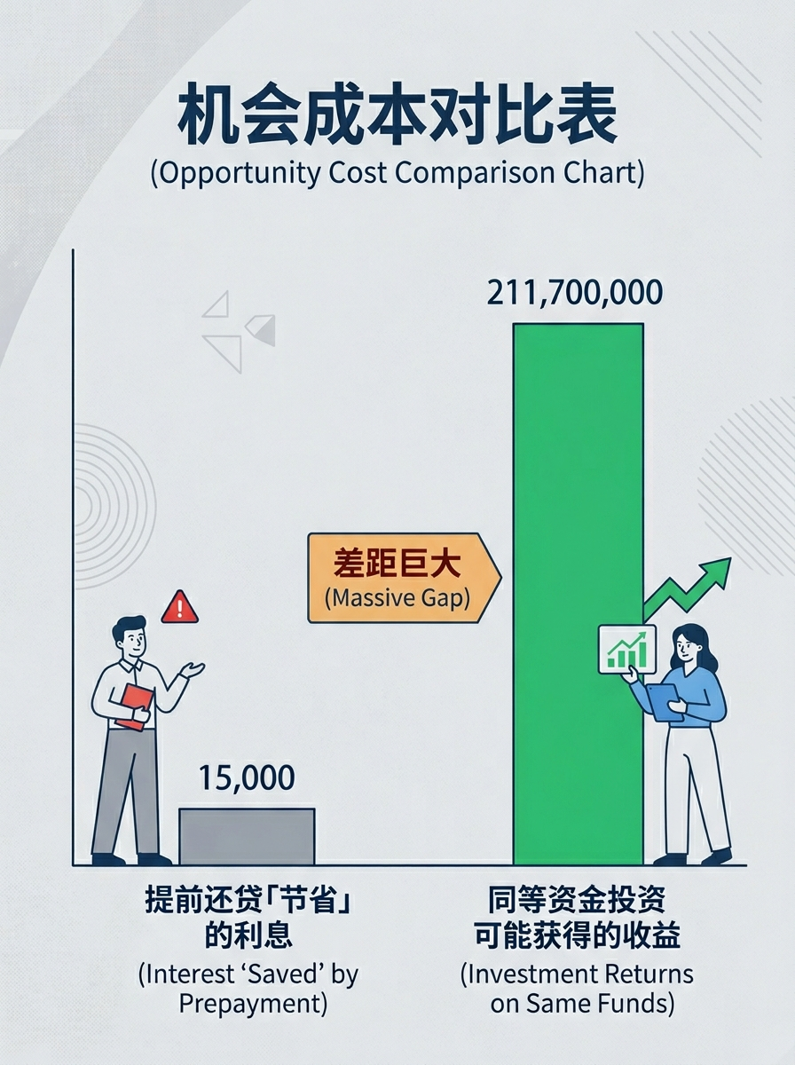 市面上最常见的算账方式是:如果你的房贷利率是3.2%,而你的理财收益率只有1.5%,提前还贷是“赚”的。这个算法的漏洞藏在分母里。